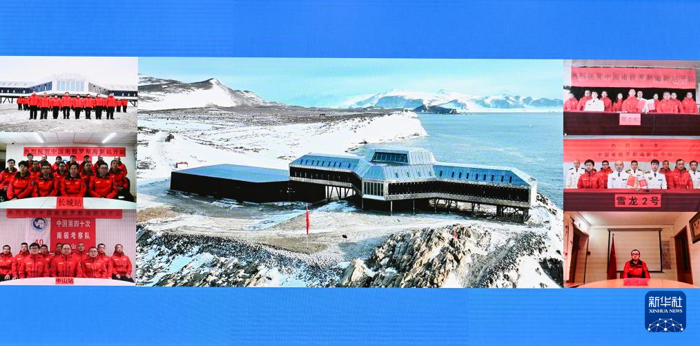這是2月7日在中國南極秦嶺站拍攝的揭牌儀式。