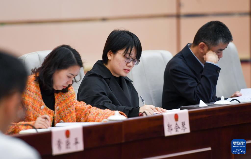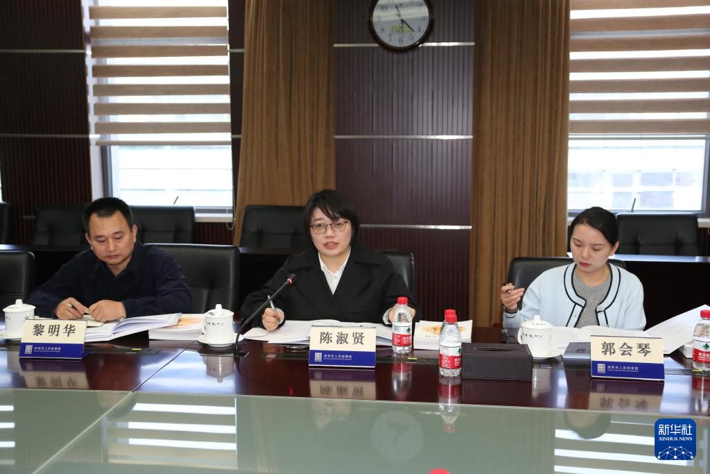 陳淑賢(中)與其他全國人大代表一同在深圳市檢察院調研(2023年11月20日攝)。