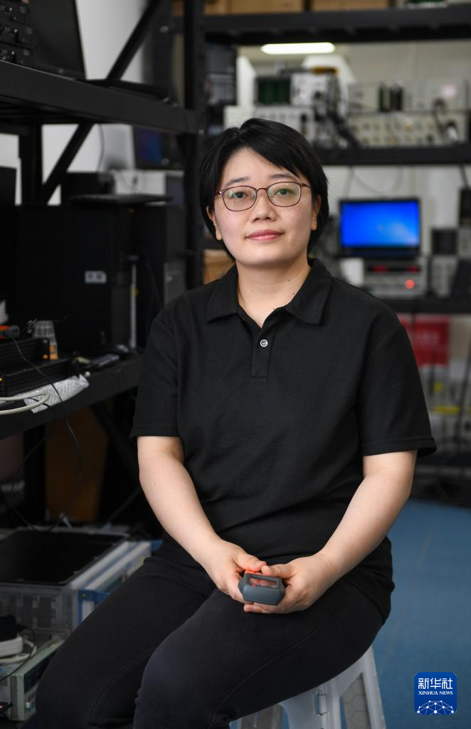 陳淑賢在辦公室檢查鐵路綜合數字移動通信系統無線數據模塊(2月20日攝)。
