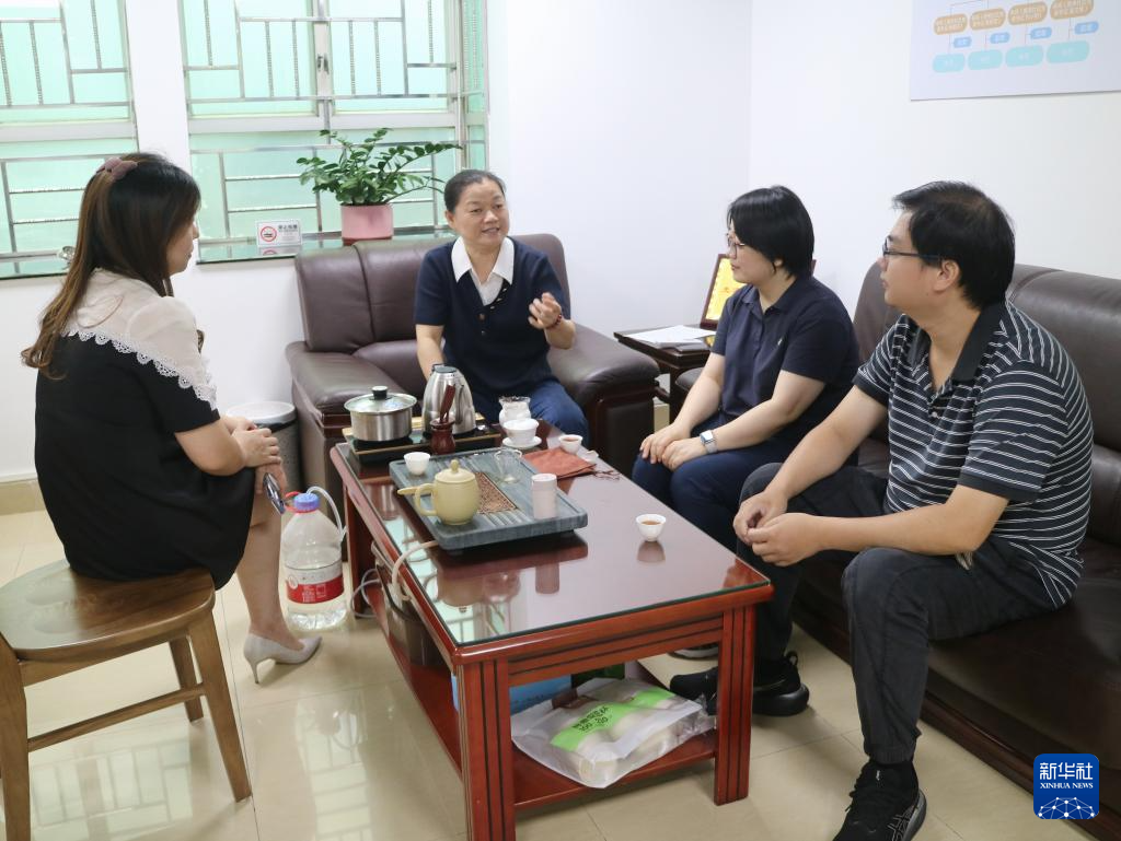 陳淑賢(右二)在深圳市鹽田區梧桐社區調研時與社區工作人員交流(2023年7月24日攝)。