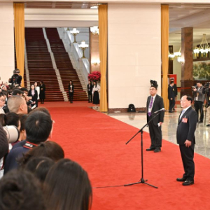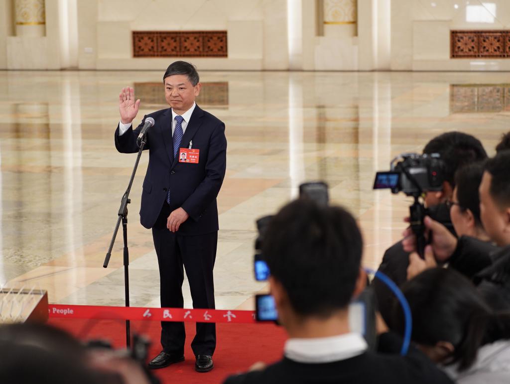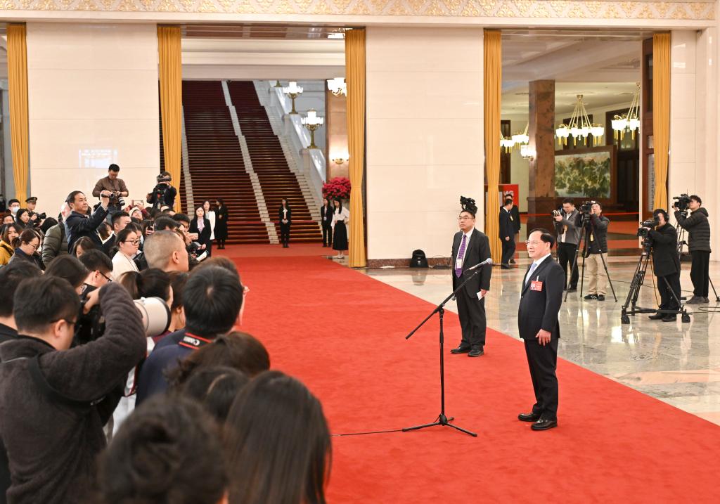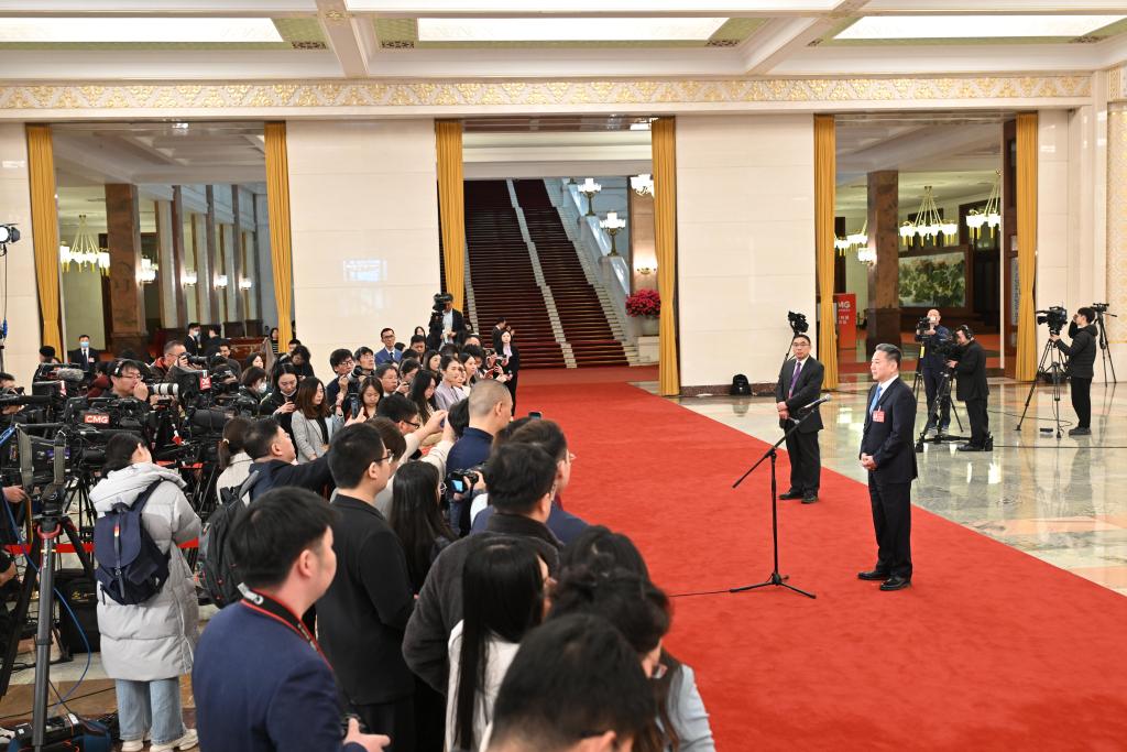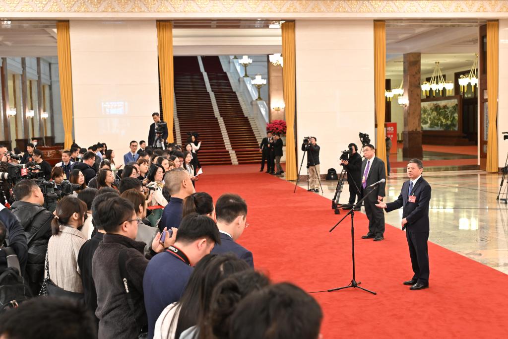 3月8日,第十四屆全國人民代表大會第二次會議第二場“部長通道”集中采訪活動在北京人民大會堂舉行。這是工業和信息化部部長金壯龍接受媒體采訪。