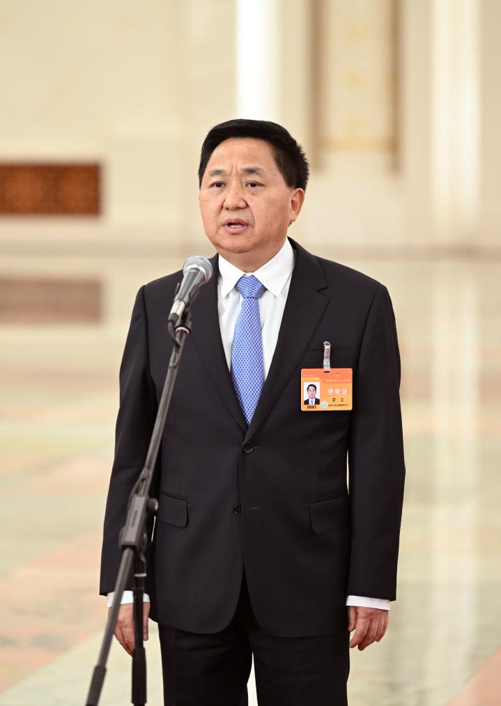 3月8日,第十四屆全國人民代表大會第二次會議第二場“部長通道”集中采訪活動在北京人民大會堂舉行。這是民政部部長陸治原接受媒體采訪。