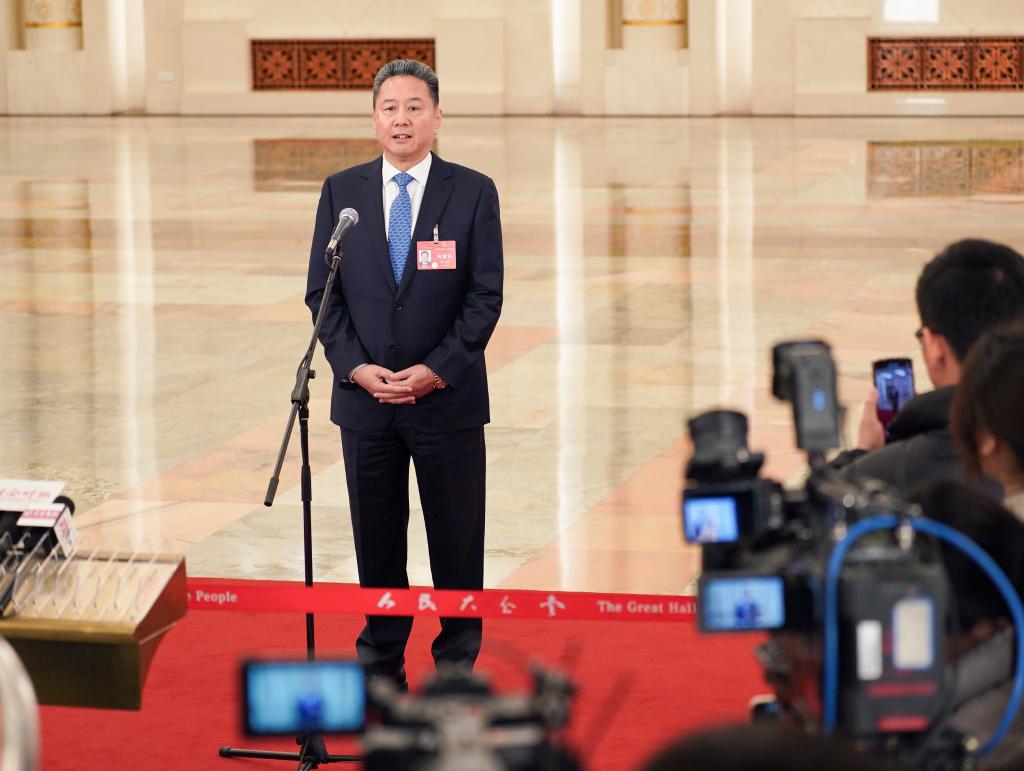 3月8日,第十四屆全國人民代表大會第二次會議第二場“部長通道”集中采訪活動在北京人民大會堂舉行。這是生態環境部部長黃潤秋接受媒體采訪。