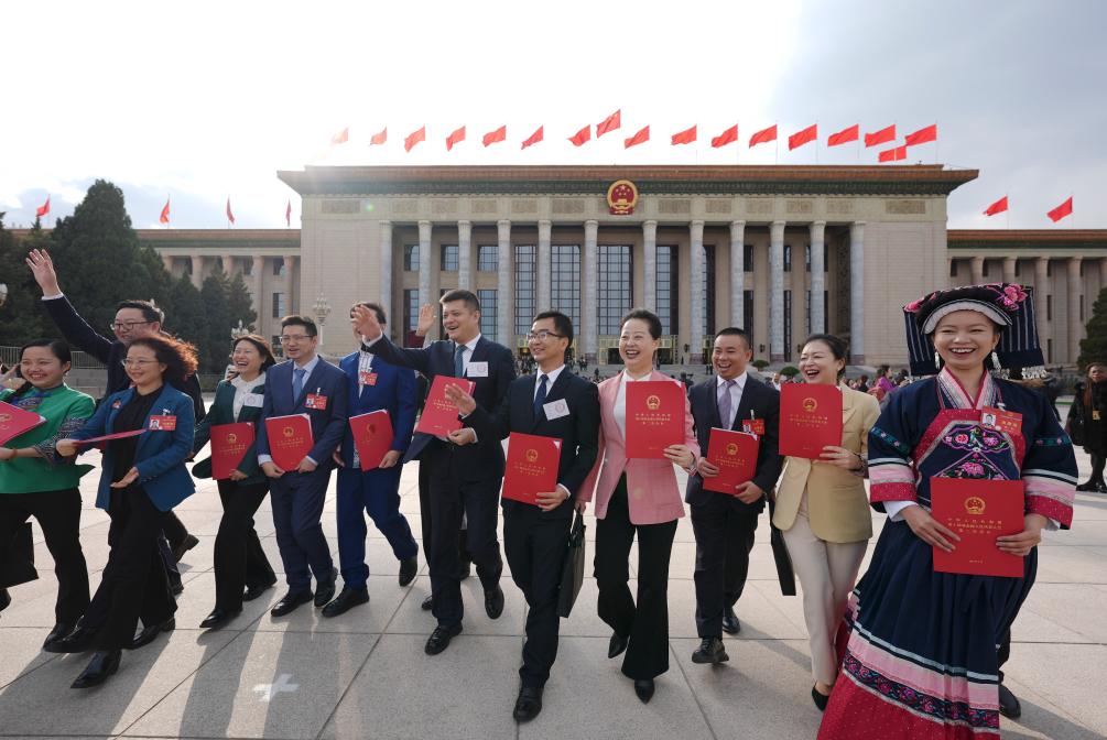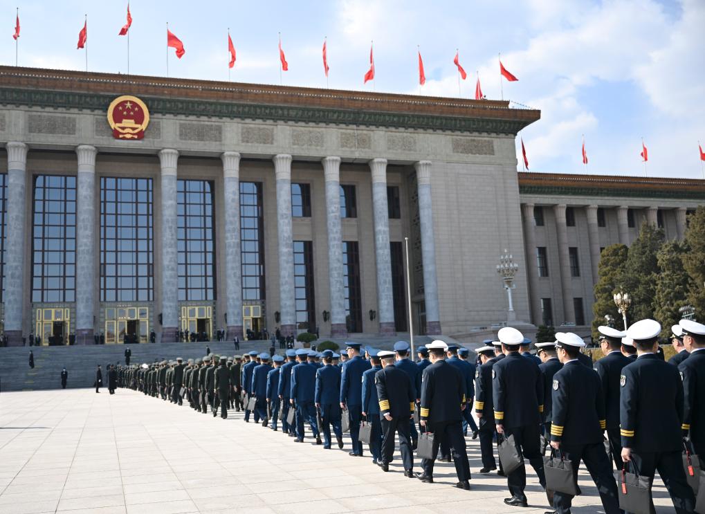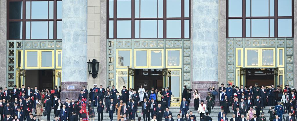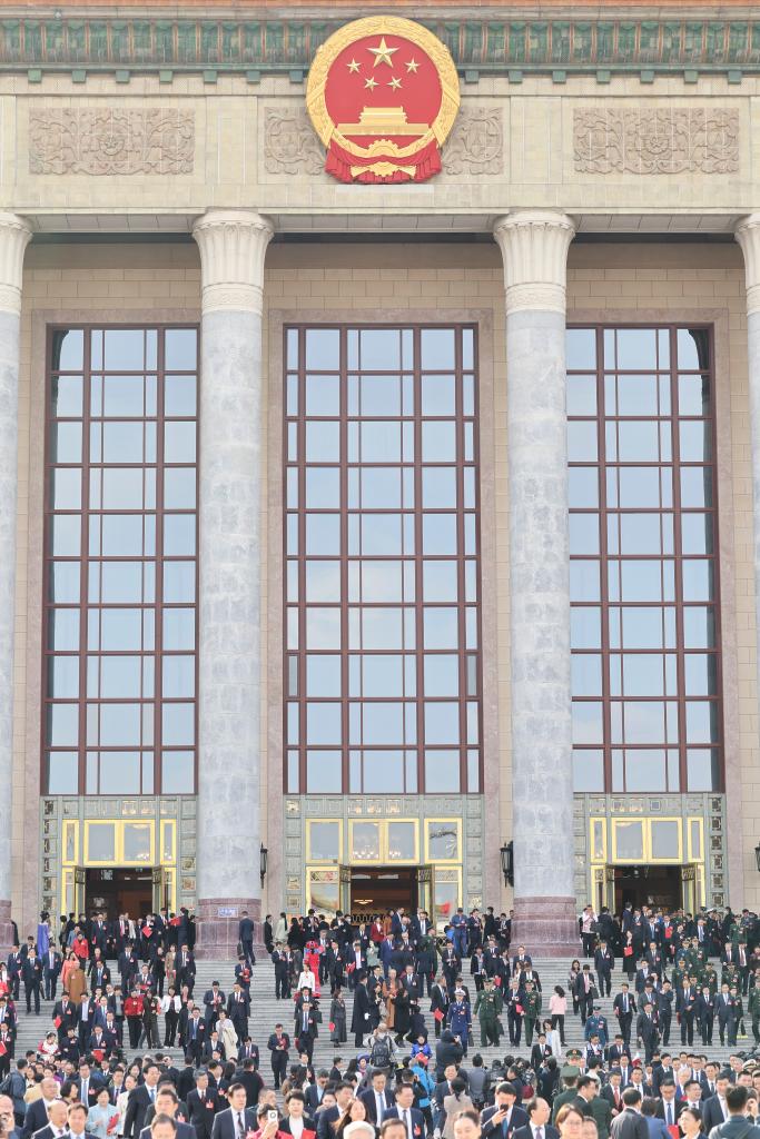 3月11日,第十四屆全國人民代表大會第二次會議在北京人民大會堂舉行閉幕會。這是閉幕會后,代表們走出人民大會堂。