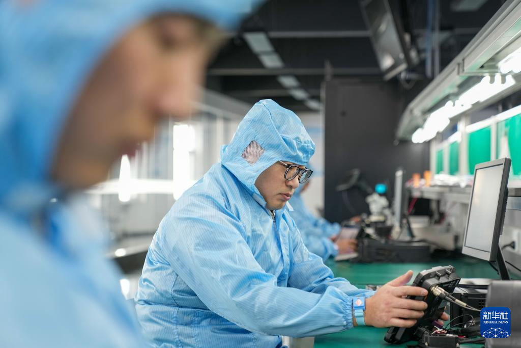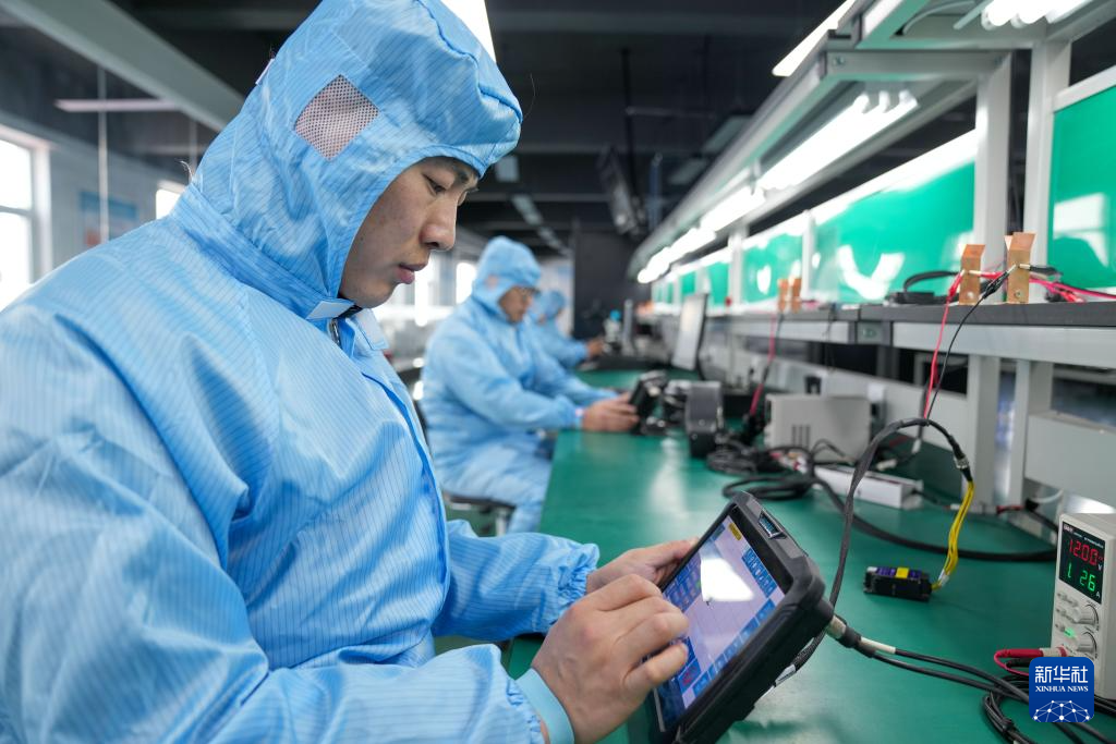 3月13日,在北大荒(佳木斯)精準農業科技有限公司生產線上,工作人員對生產的北斗自動駕駛儀進行測試。