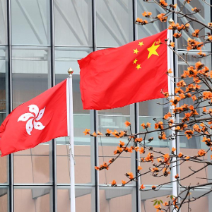 這是在香港特區立法會綜合大樓外拍攝的中華人民共和國國旗、香港特區區旗(2024年3月19日攝)。新華社記者 陳鐸 攝pagebreak
