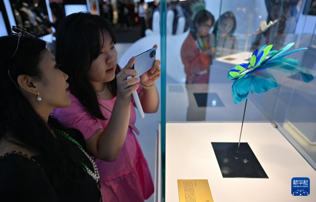 4月13日,觀眾在消博會觀看一款珠寶擺件。