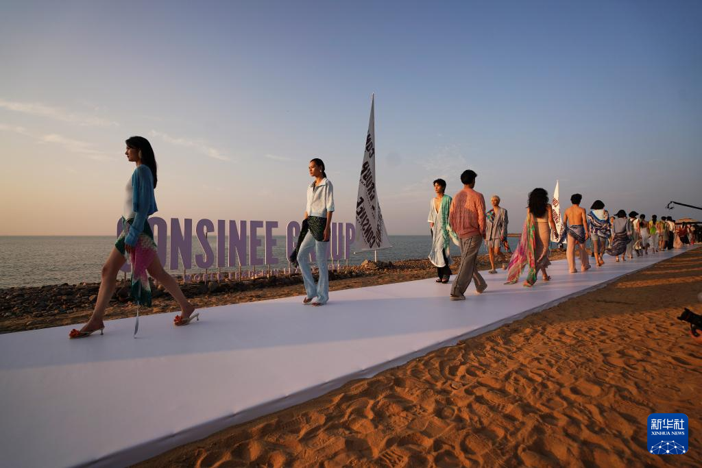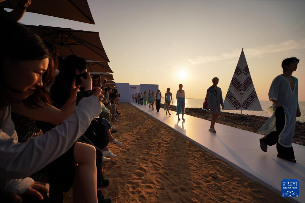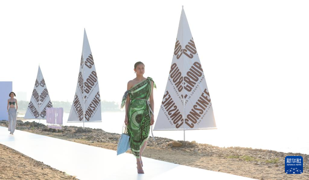 4月15日,在??趪H免稅城消博會時裝周主秀場,模特在展示時裝作品。