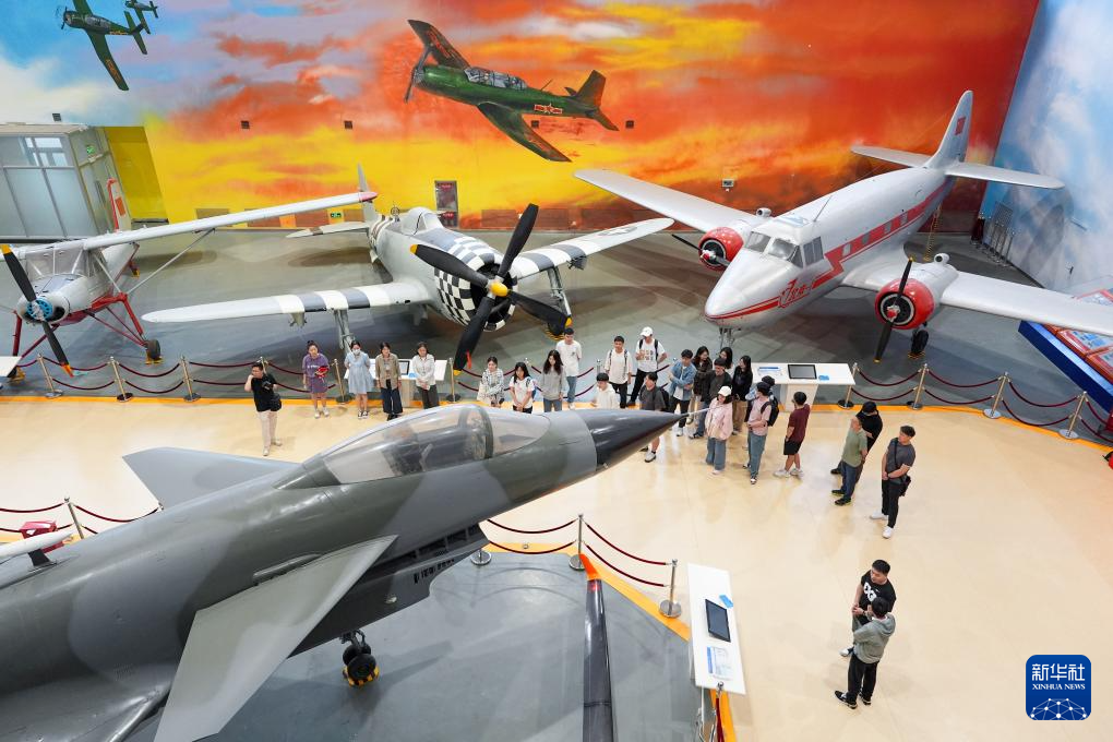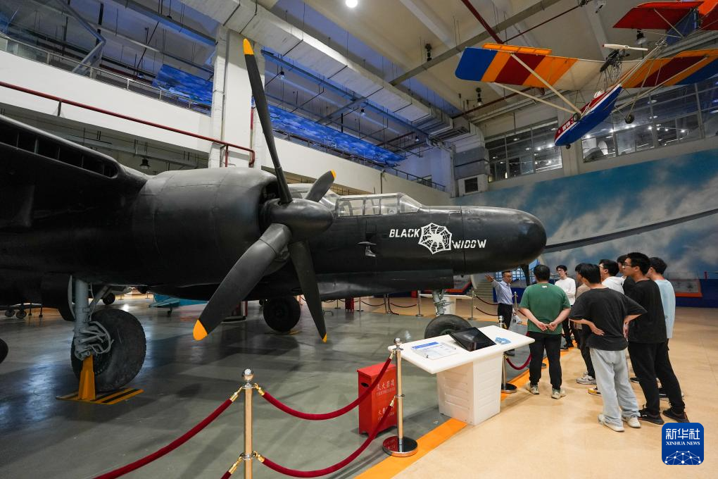 5月10日,在位于北京航空航天大學的北京航空航天博物館內,參觀者在參觀展出的第二次世界大戰期間由美國諾斯洛普公司研制的P-61戰斗機。