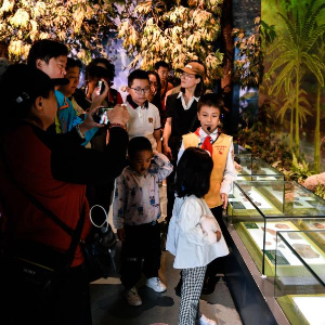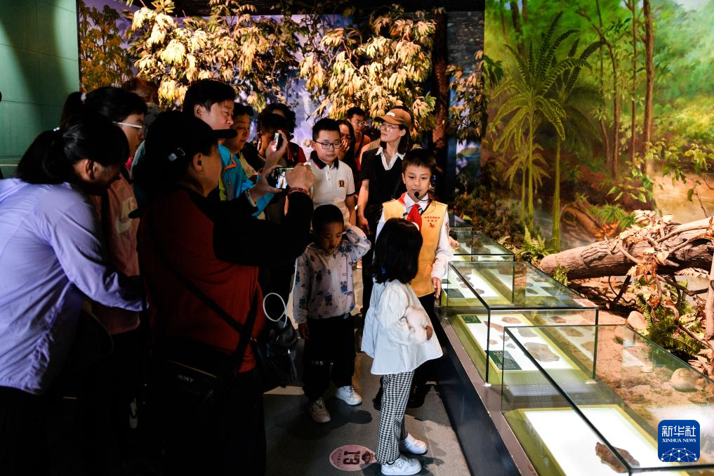 張書鋮在甘肅省博物館古生物化石展廳為游客講解(5月12日攝)。