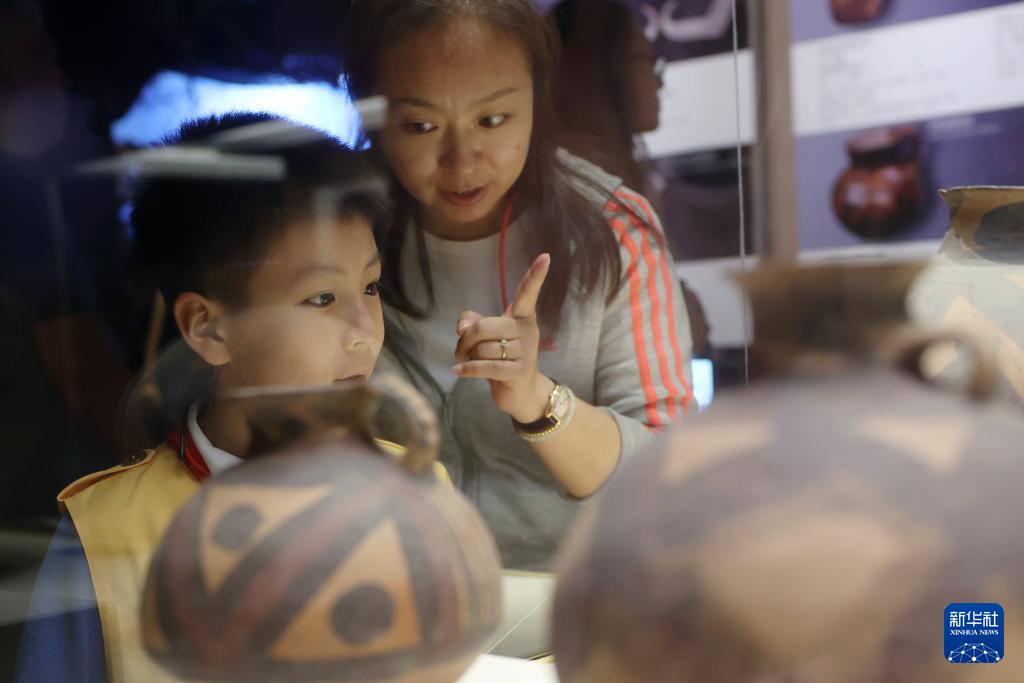 張書鋮(左)和母親姜楠在甘肅省博物館展廳內參觀學習(5月28日攝)。