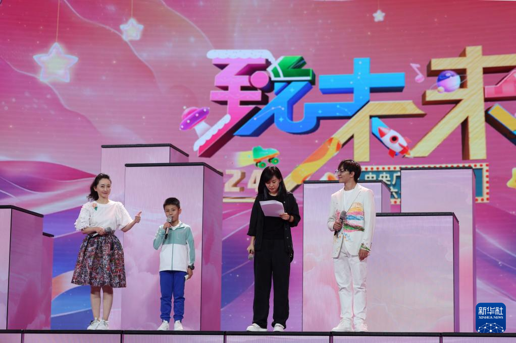 張書鋮(左二)在中央廣播電視總臺“六一”晚會節目錄制現場彩排(5月23日攝)。