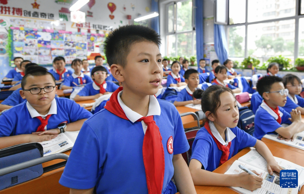 在蘭州市七里河區秀川小學,張書鋮在課堂上回答老師提問(5月28日攝)。