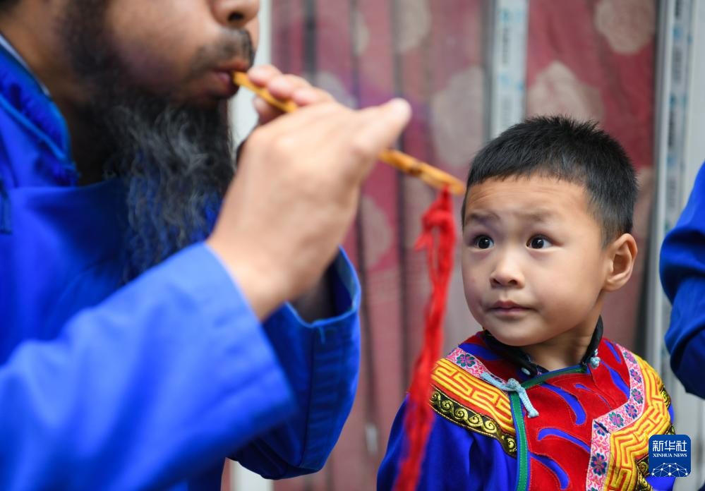 在小耶格的家族,羊皮鼓舞和羊皮鼓制作技藝已經傳承了好幾代,小耶格從小耳濡目染。8個月大的時候,小耶格就拿起鼓槌當玩具敲著玩?,F在,拿起專門為他制作的小羊皮鼓,小耶格已經能夠很自信地跟著長輩們的節奏跳起來。