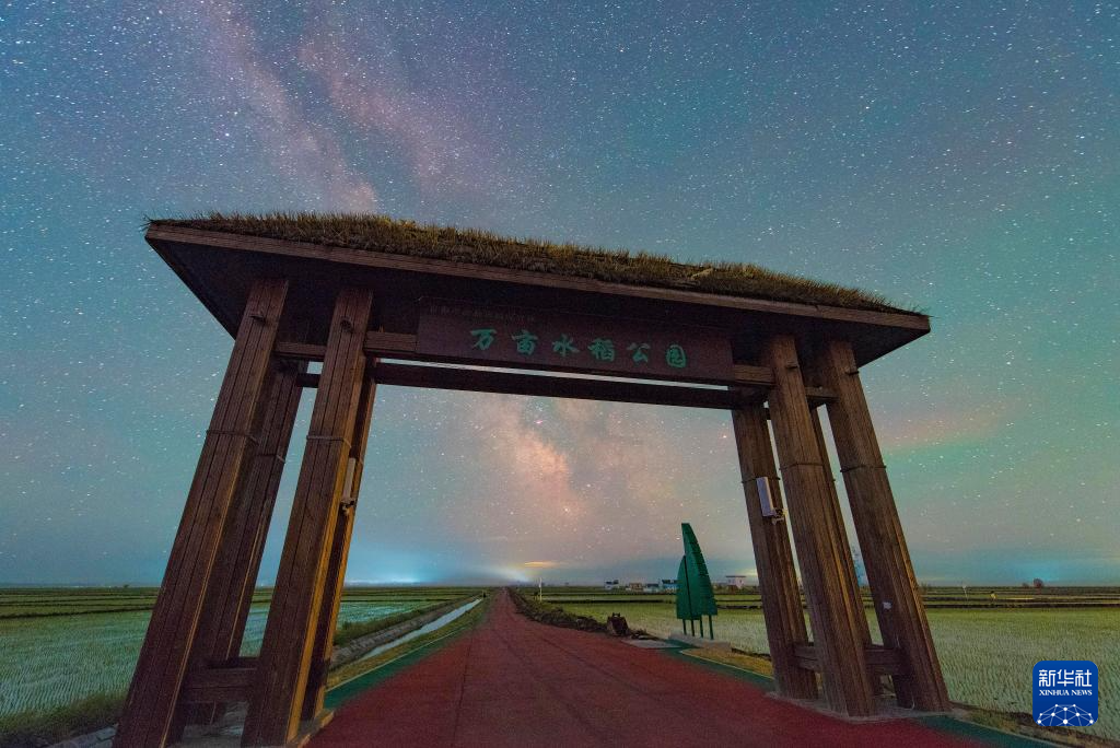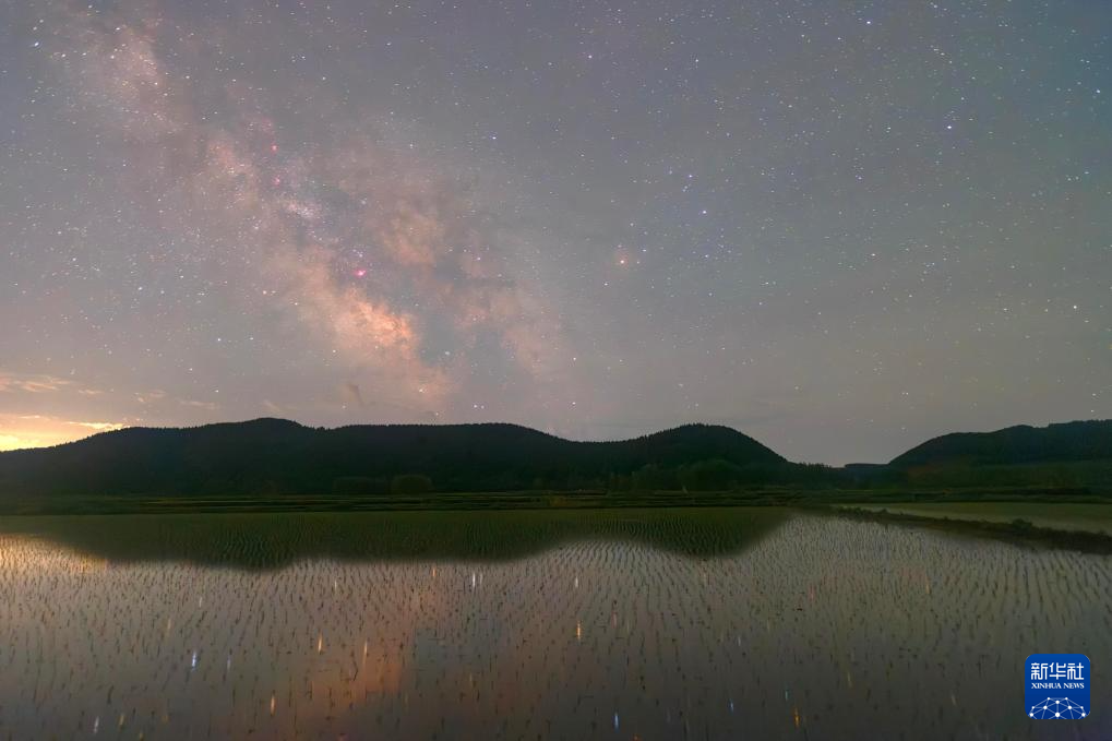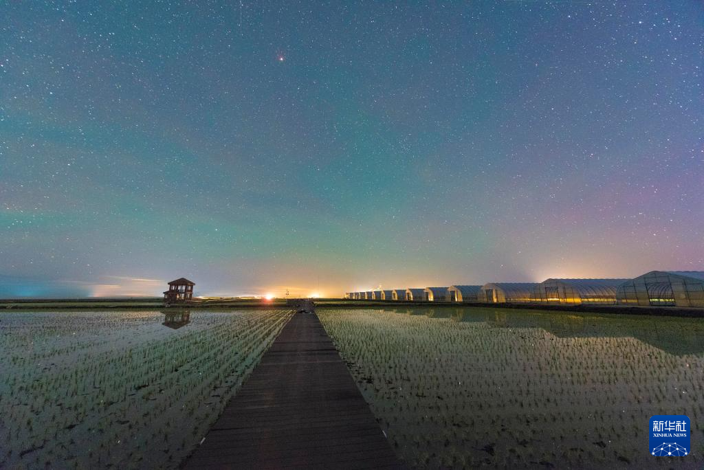 這是星空下的黑龍江省佳木斯富錦市萬畝水稻公園(6月1日攝)。