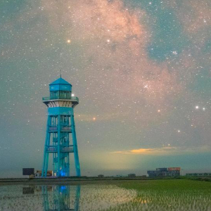 5月8日,黑龍江省佳木斯富錦市的一處待插秧的稻田與星空相映成景。