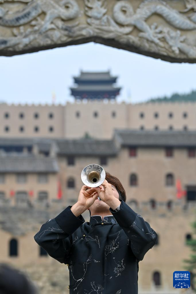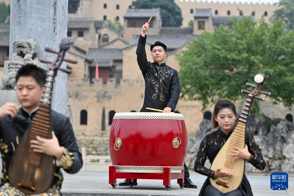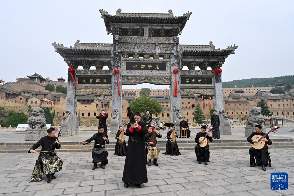 演員在湘峪古堡進行民樂表演(7月9日攝)。
