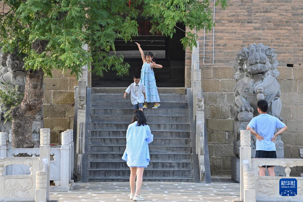 游客參觀湘峪古堡(7月11日攝,無人機照片)。
