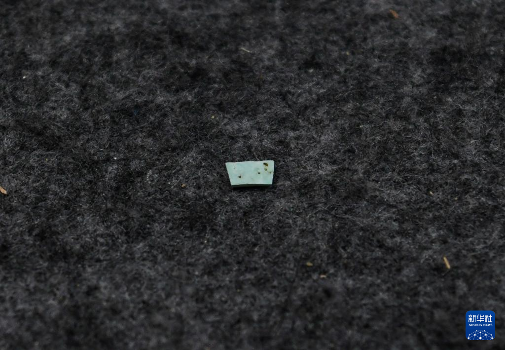 在四川省文物考古研究院拍攝的三星堆遺址出土的綠松石(7月10日攝)。