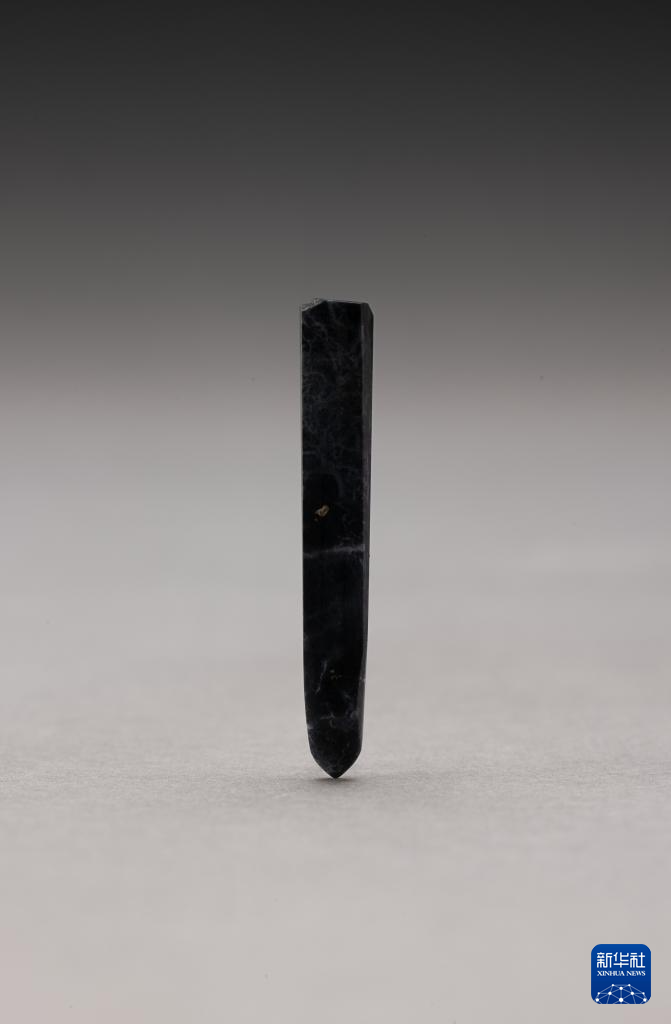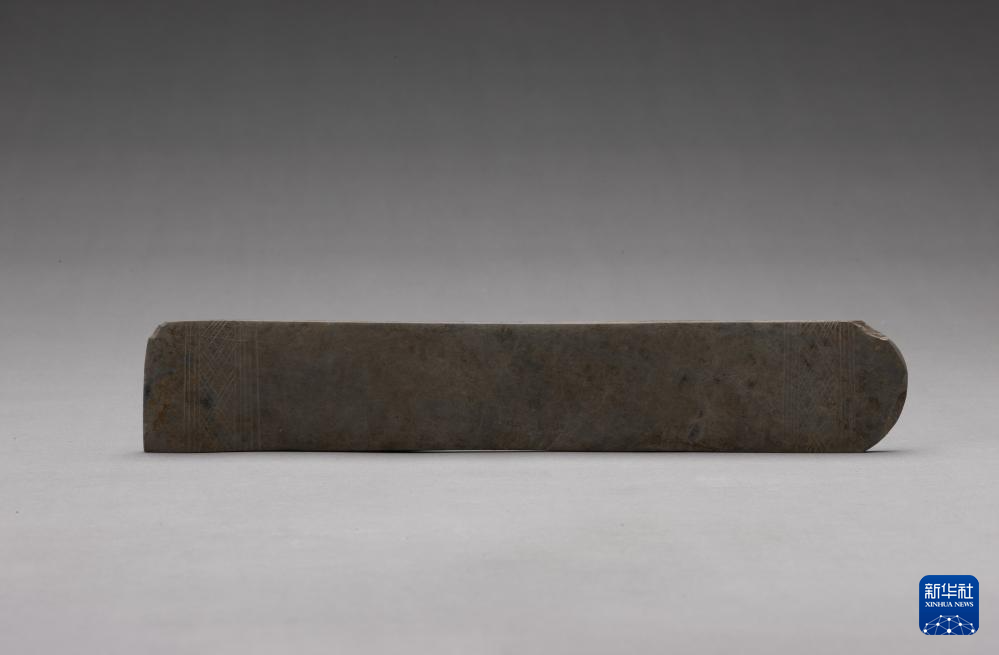 在四川省文物考古研究院拍攝的三星堆遺址出土的玉鑿(7月10日攝)。