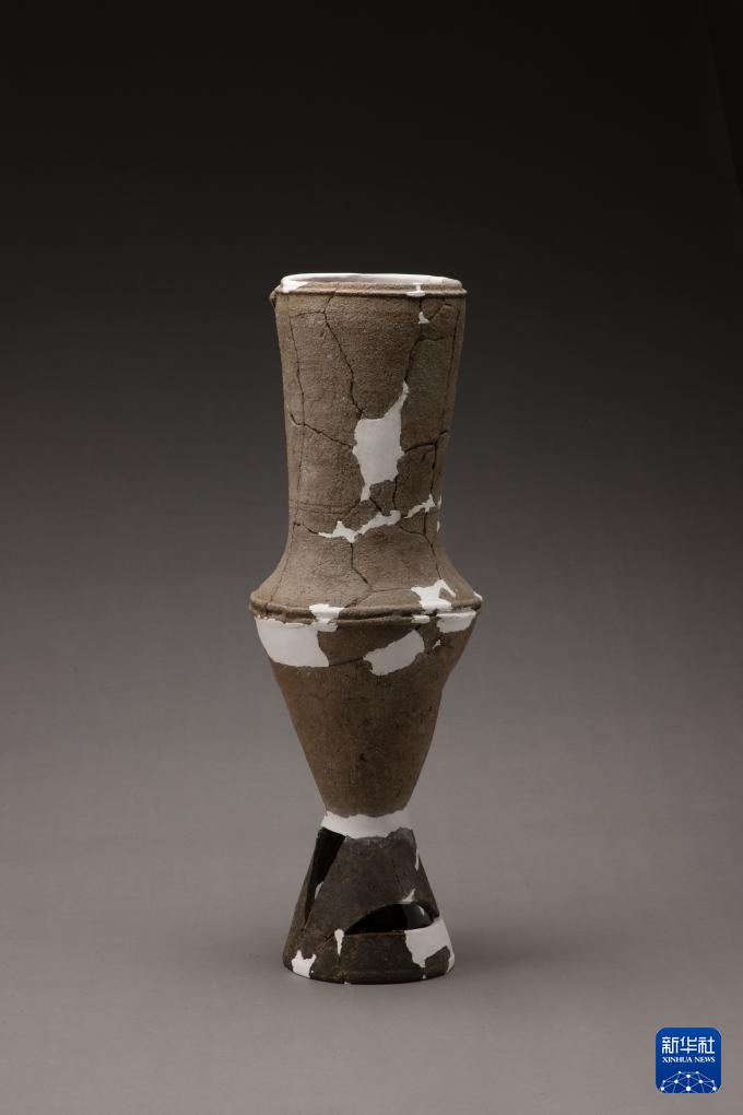 三星堆遺址發掘區出土的陶子母口壺(5月14日攝)。
