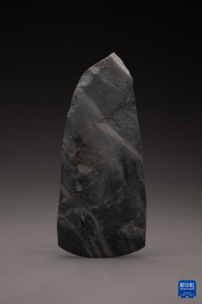 三星堆遺址發掘區出土的石斧(4月27日攝)。