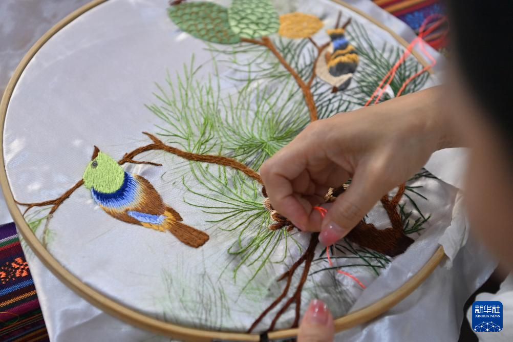 “我從小就跟著奶奶學刺繡,后來又跟著姑姑、阿姨學,在學習中不斷創新,已經以七里刺繡為基礎創作了12種工藝品。我要讓七里刺繡走出大山,讓越來越多的人接受;讓七里刺繡走進學校,走近孩子,讓阿奶的手藝代代相傳?!睆V西百色市田東縣義圩鎮朔晚村村民凌漫麗說。