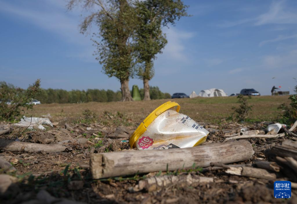 在遼寧沈陽一處露營地,垃圾被隨意丟棄(10月4日攝)。