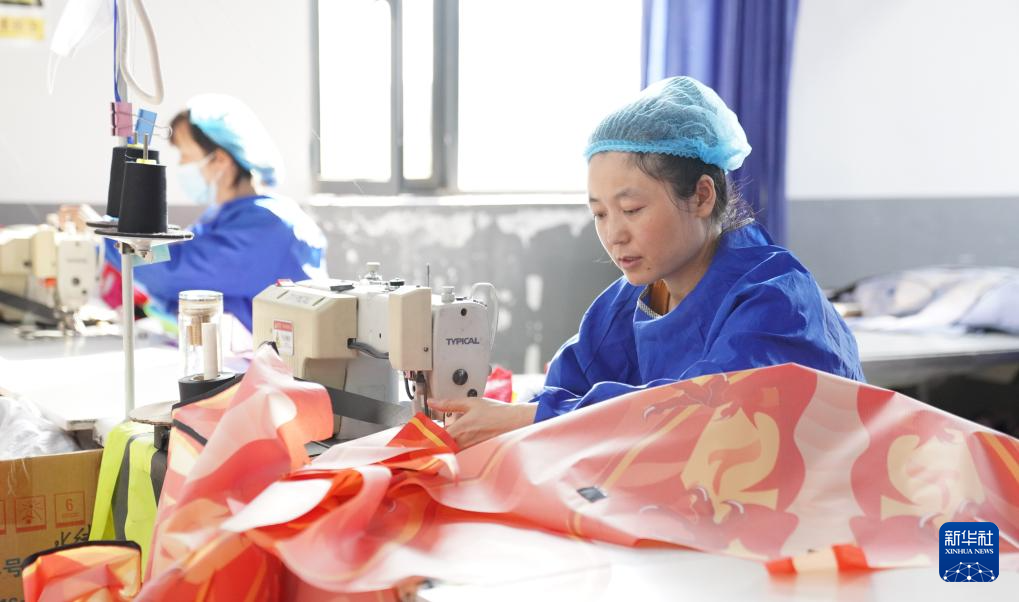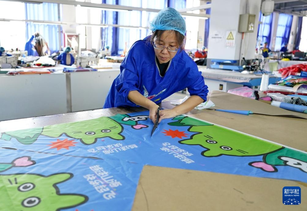 10月14日,在山東省濰坊市寒亭區的一家風箏生產企業,工人在制作風箏。