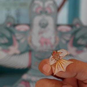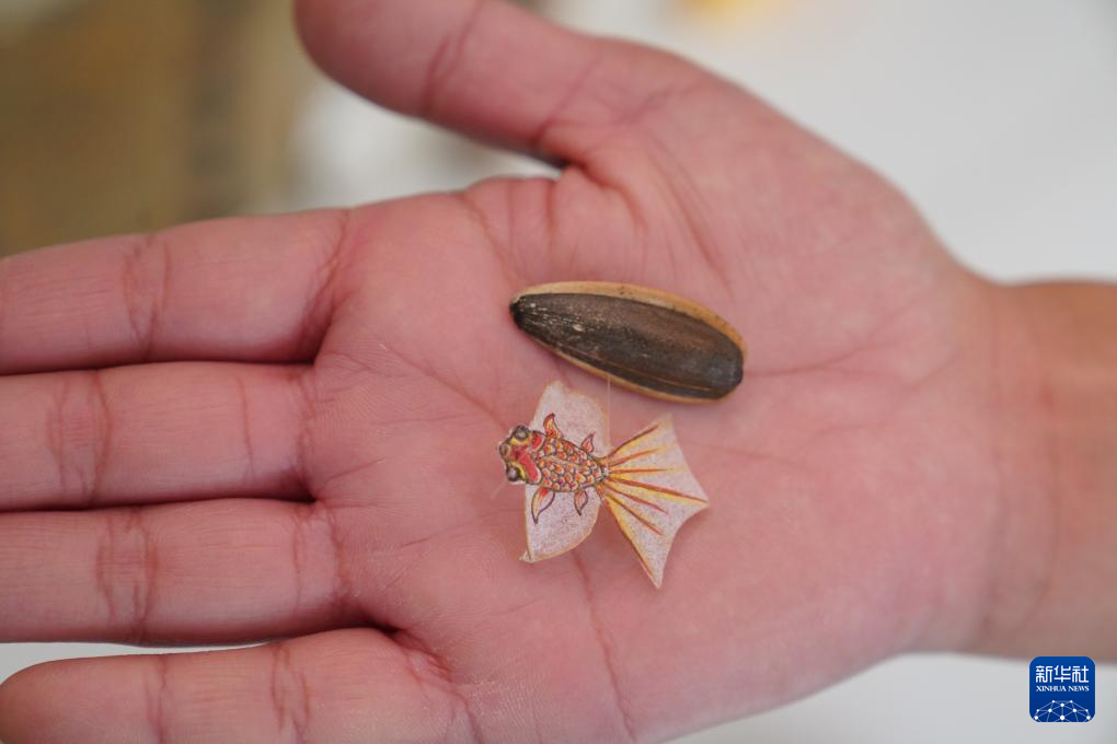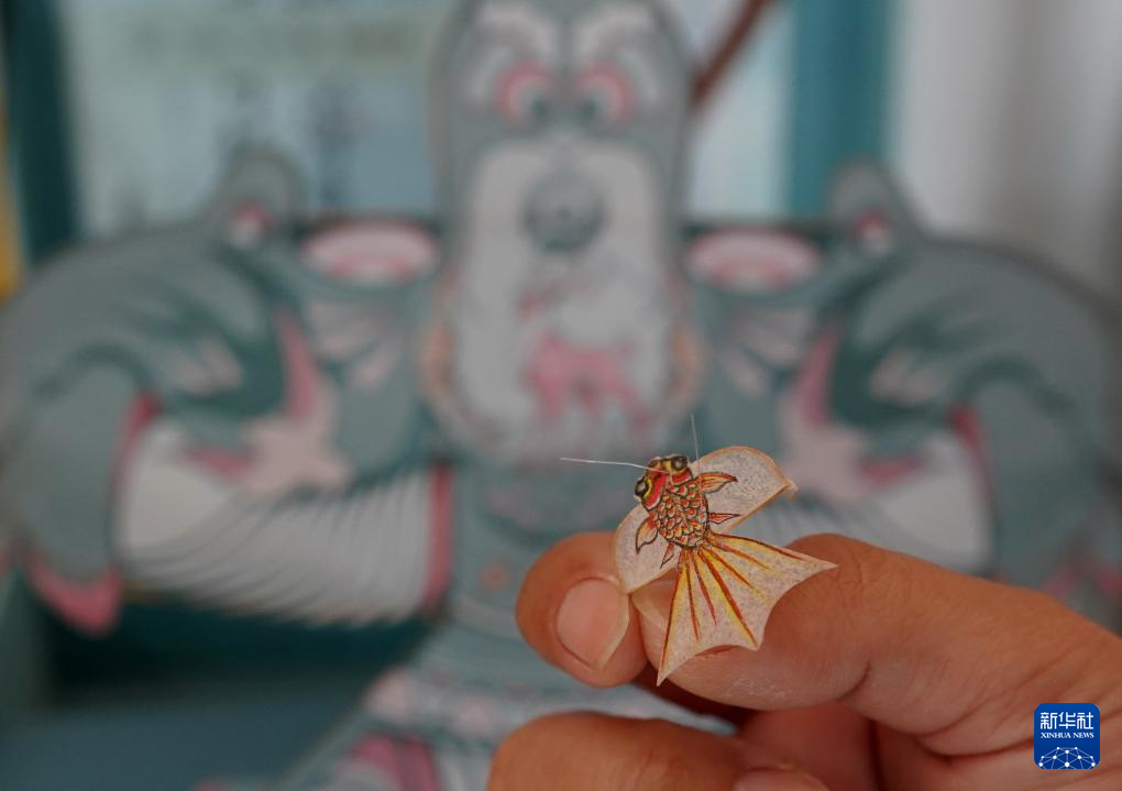 10月14日,在山東省濰坊市寒亭區的一家風箏作坊,工作人員在展示一款迷你風箏。