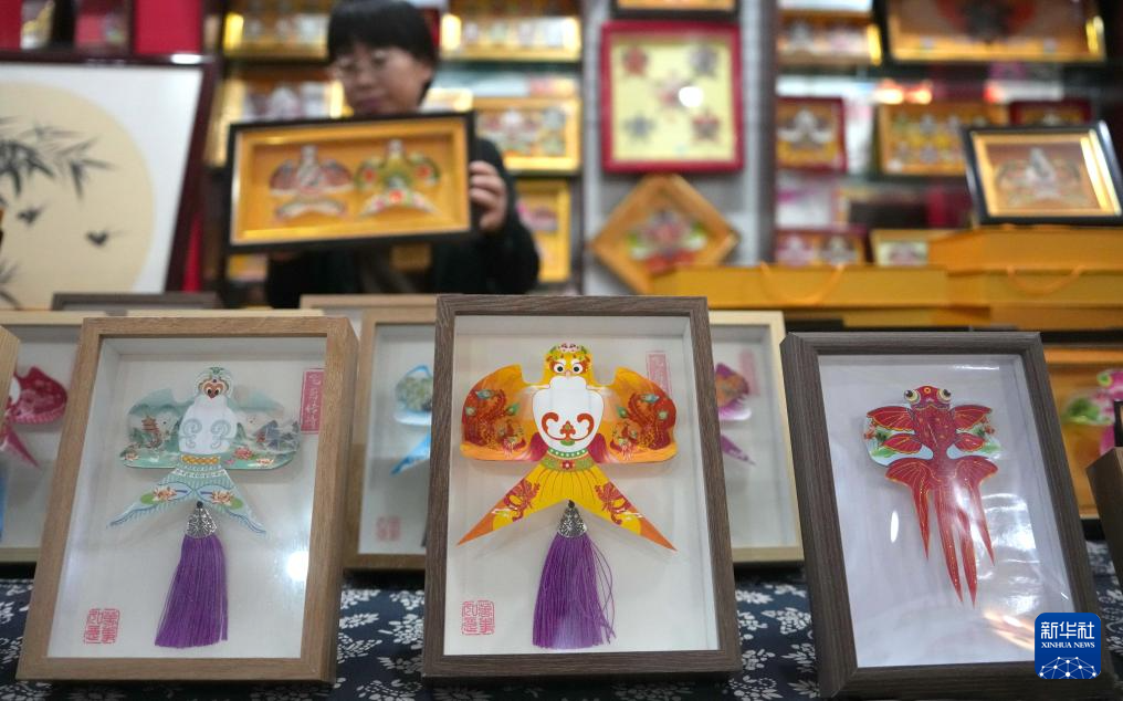 10月14日,在山東省濰坊市寒亭區,一家風箏作坊展示的風箏文創產品。