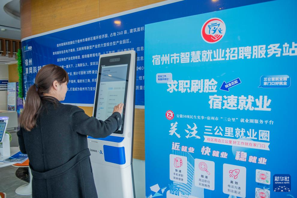 11月12日,市民在宿州青網科技園利用求職機了解求職信息。