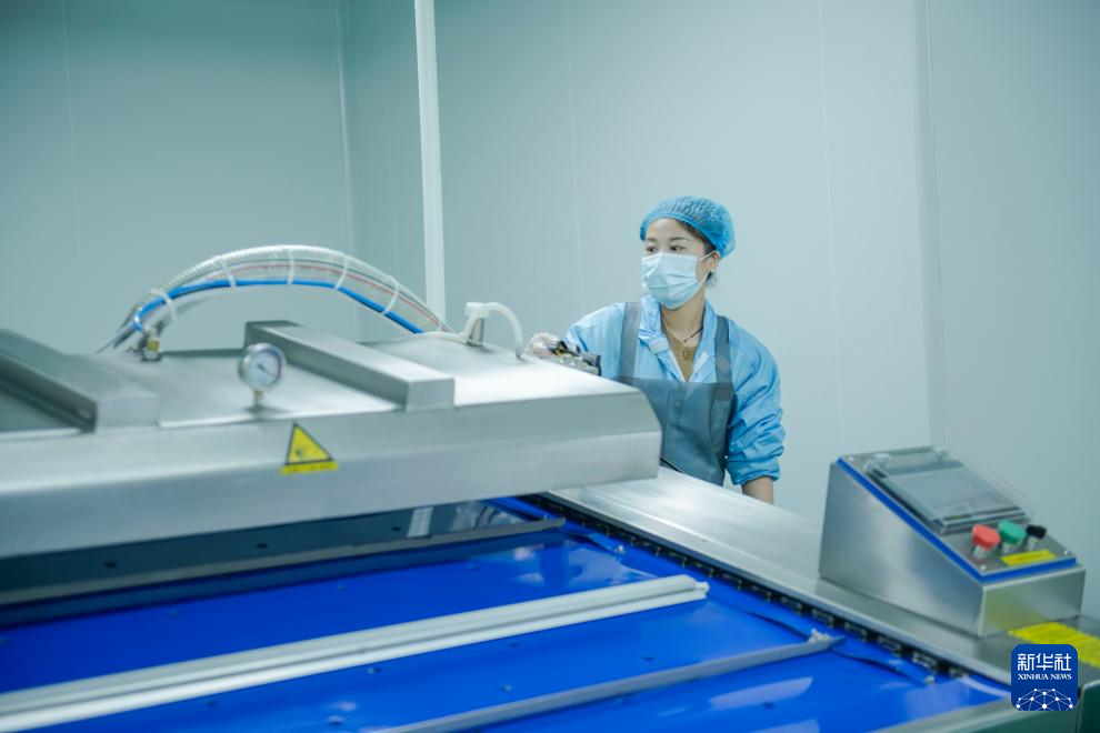 11月12日,在宿州青網科技園內的宿州市冠祥食品有限公司,工作人員在清理滾動真空包裝機。
