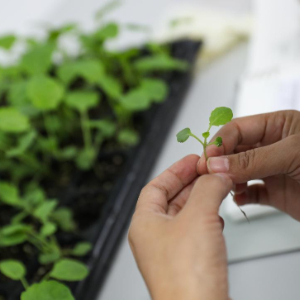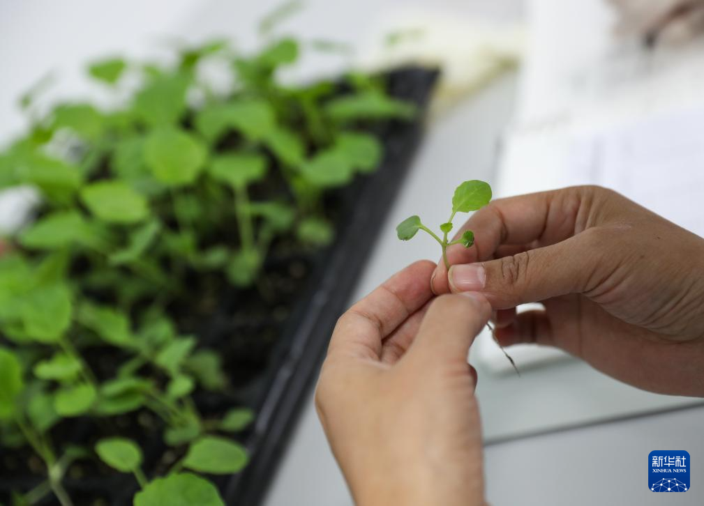 11月23日,湖南省農業科學院的研究人員在岳麓山實驗室的分子生物學技術平臺里對油菜苗進行性狀測試。