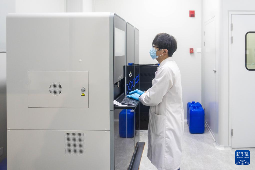 11月23日,在華智生物技術有限公司檢測檢驗實驗室,工作人員在進行水稻全基因組測序。