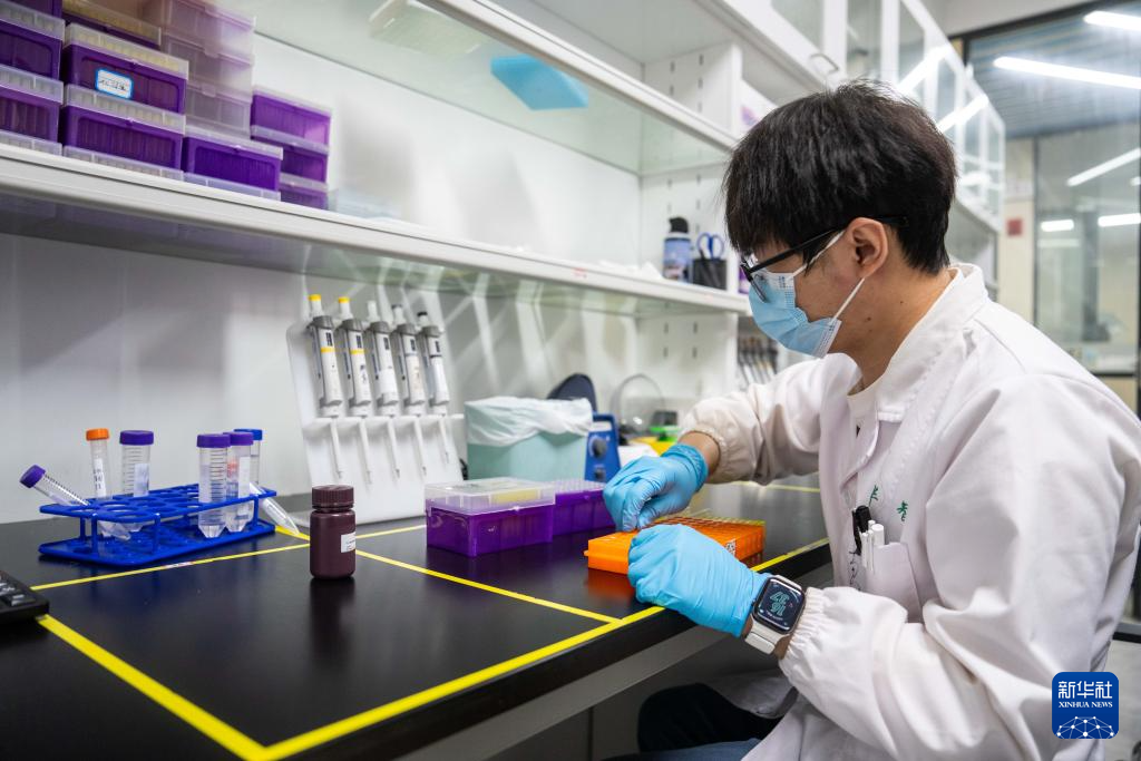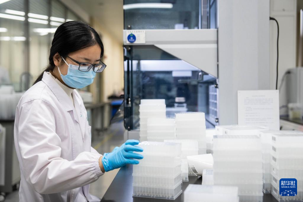 11月23日,在華智生物技術有限公司分子育種實驗室,工作人員在整理稻種DNA樣本。