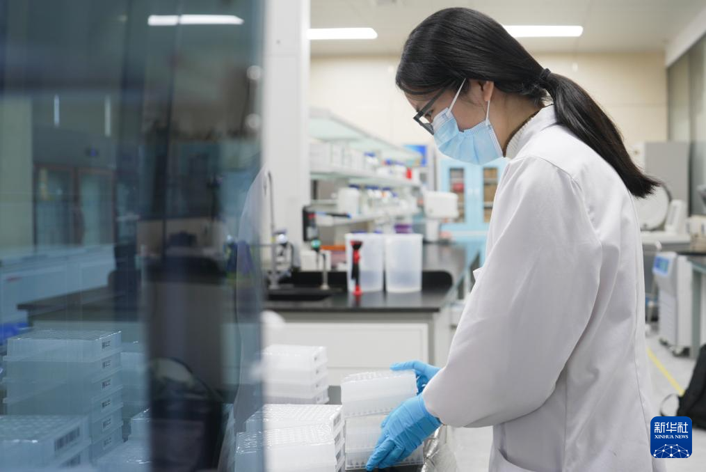 11月23日,在華智生物技術有限公司檢測檢驗實驗室,工作人員在進行水稻全基因組建庫實驗。
