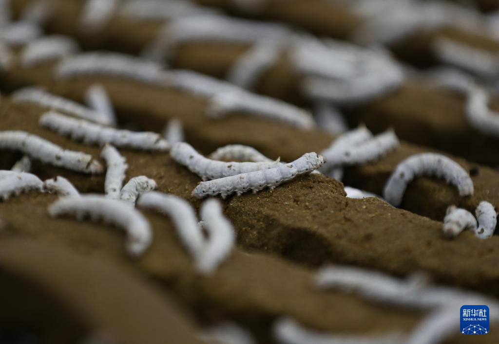 這是11月24日在雅士林長沙(國際)蠶桑絲綢智造產業園拍攝的蠶。