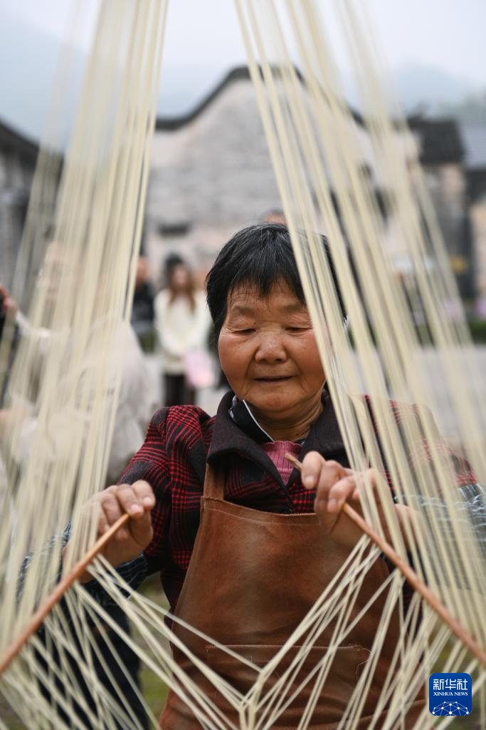 12月4日,在浙江省金華市浦江縣虞宅鄉新光村,村民在晾曬面條。