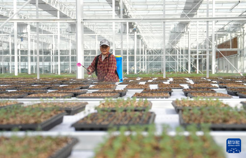 12月4日,工人在岱山現代農業產業園內澆水育苗。