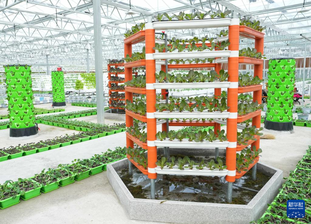這是12月4日在岱山現代農業產業園拍攝的無土栽培蔬菜。