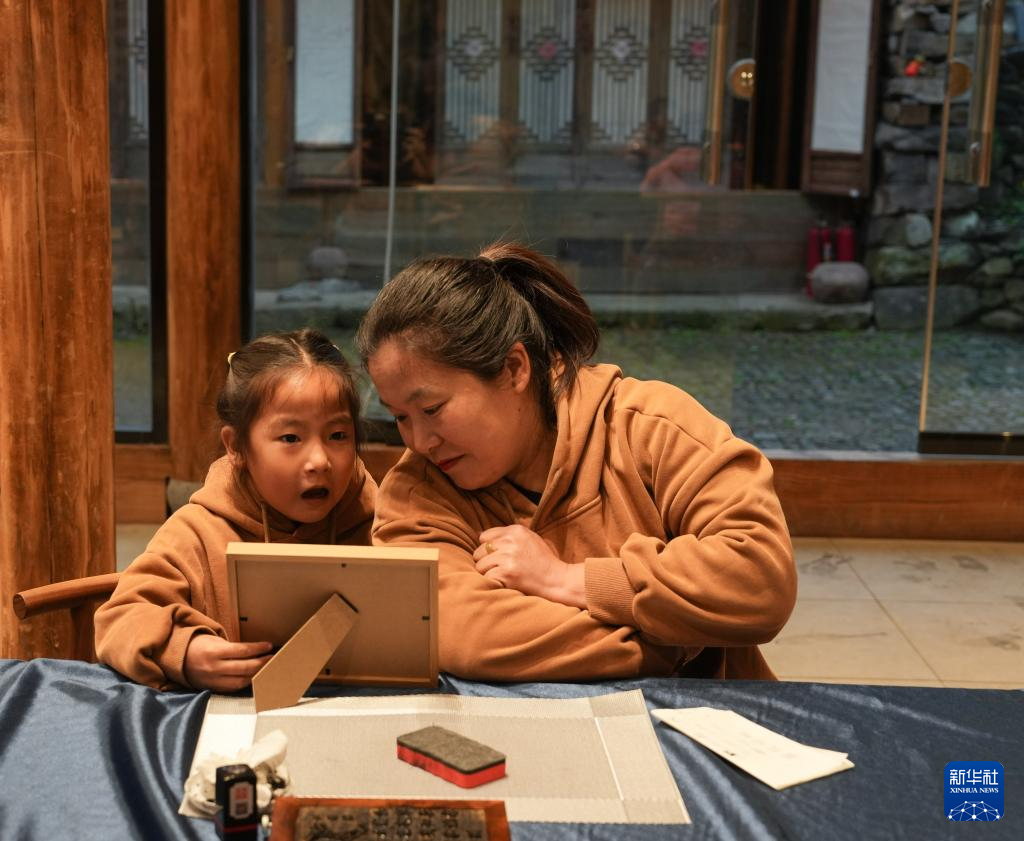 12月5日,游客在浙江寧波南陽自然村南陽福園體驗活字印刷。
