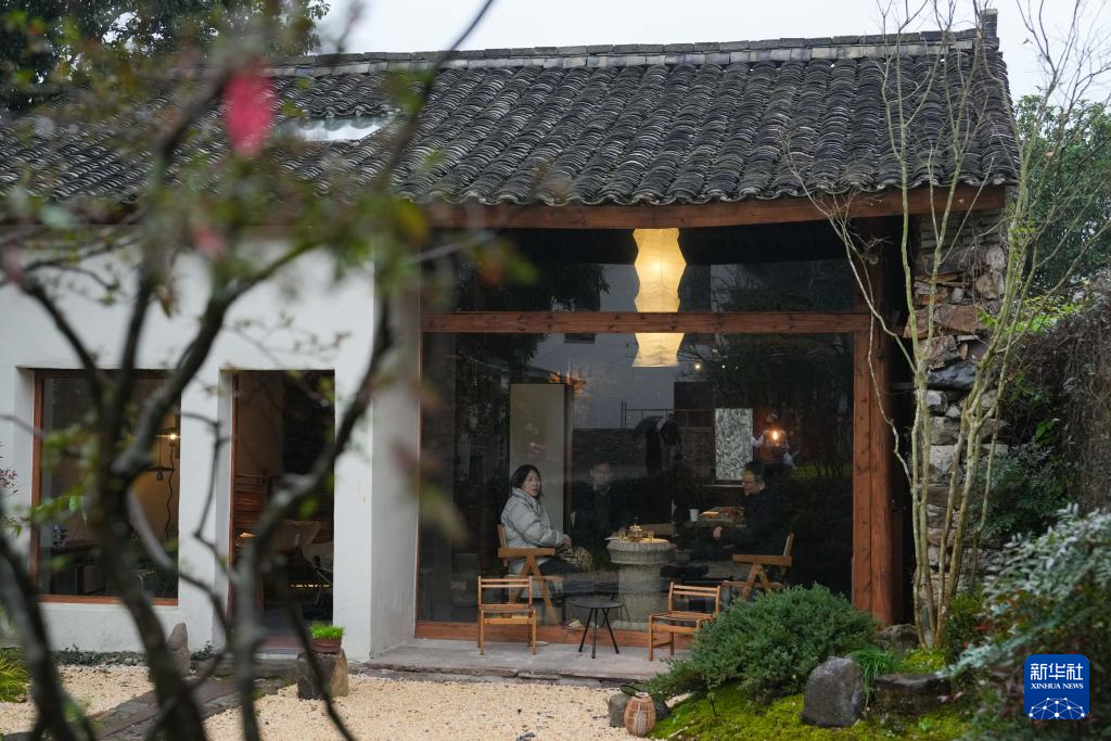 12月5日,人們在浙江寧波南陽自然村南陽福園一家咖啡店休息。
