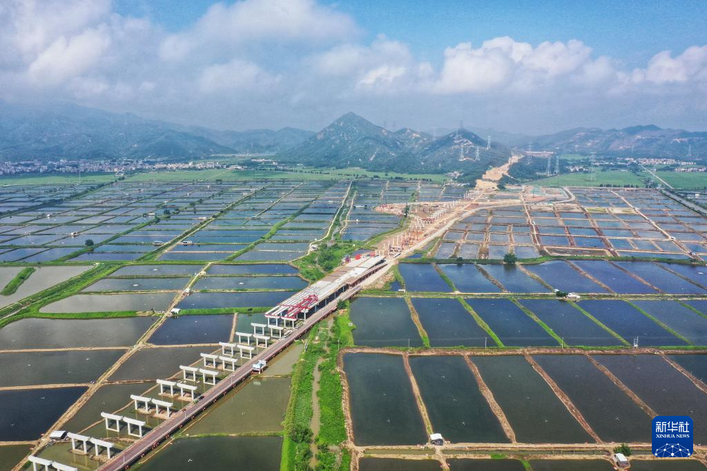 2022年5月6日拍攝的黃茅??绾Mǖ莱嘞獤|互通立交建設現場(無人機照片)。
