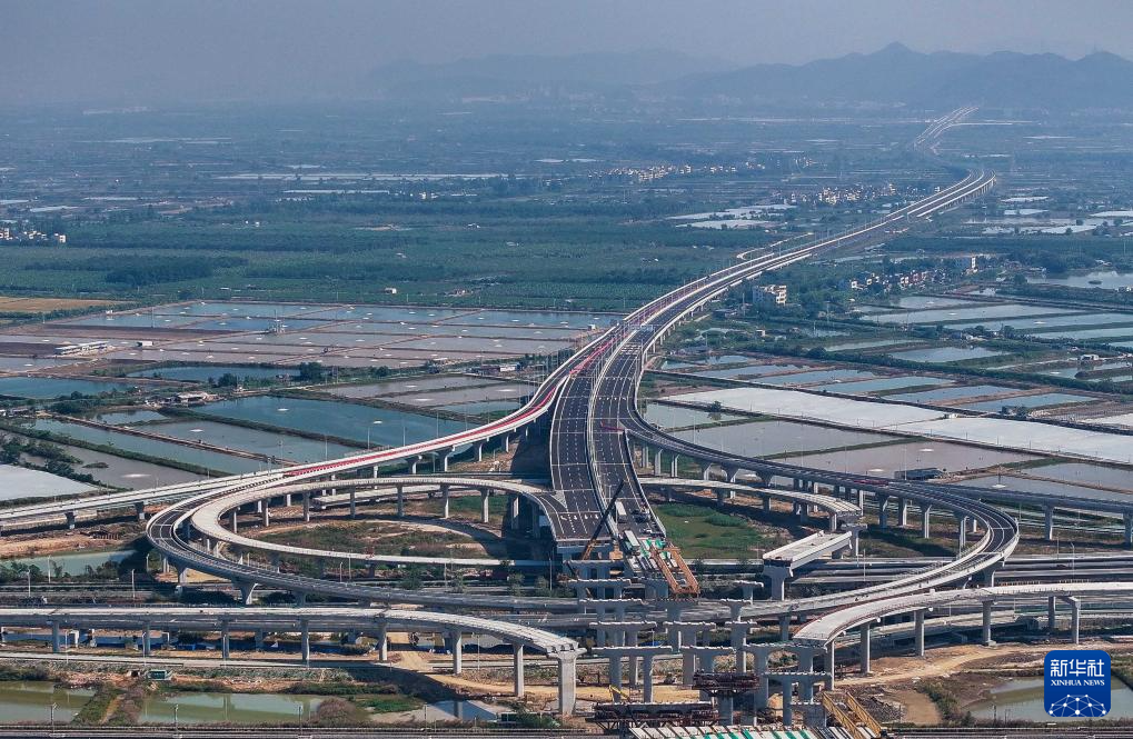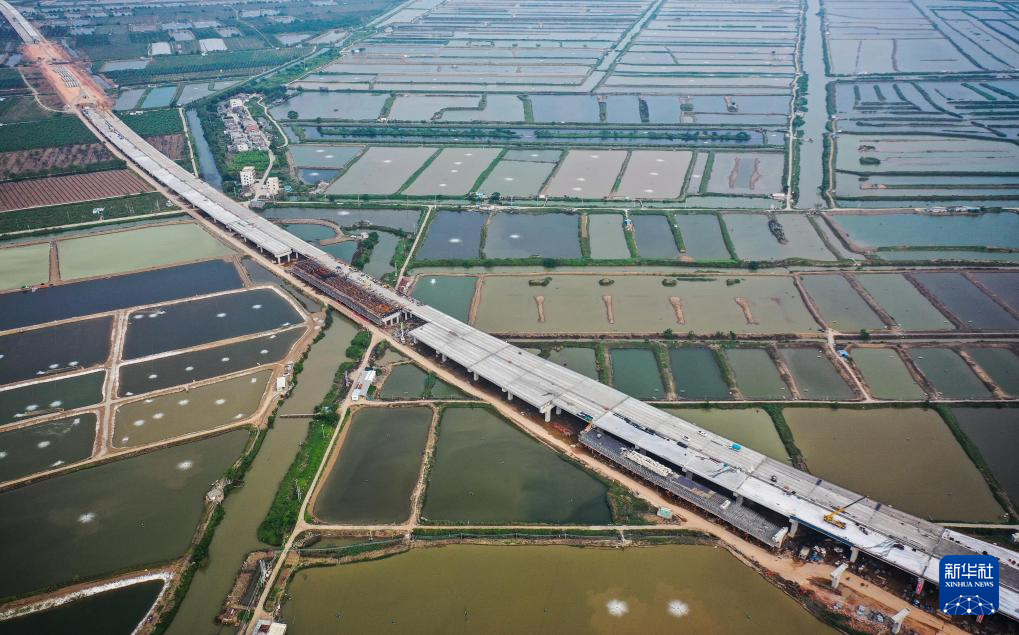 2021年5月1日拍攝的黃茅??绾Mǖ历Q港高速公路高欄港樞紐立交建設現場(無人機照片)。