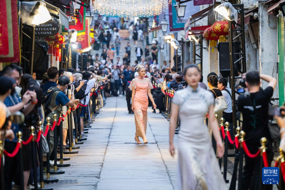 5月3日,模特在福隆新街步行區的活動上走秀。