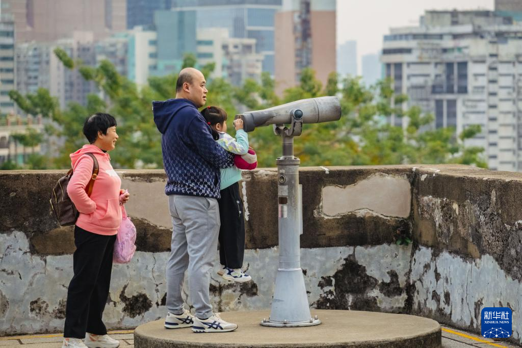 12月12日,游客坐在澳門崗頂劇院的臺階上。