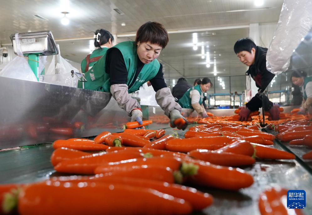 12月15日,河北省秦皇島市撫寧區留守營鎮一家蔬菜種植合作社的社員在凈菜加工車間工作。