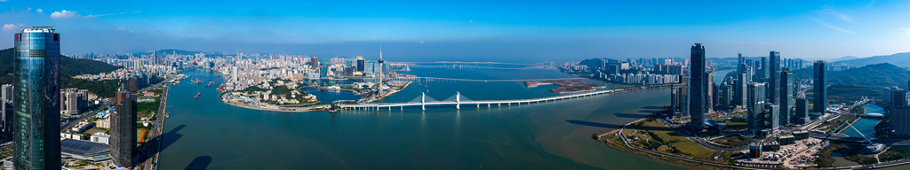 12月11日,澳門半島、橫琴、珠海的景色(無人機拼接照片)。