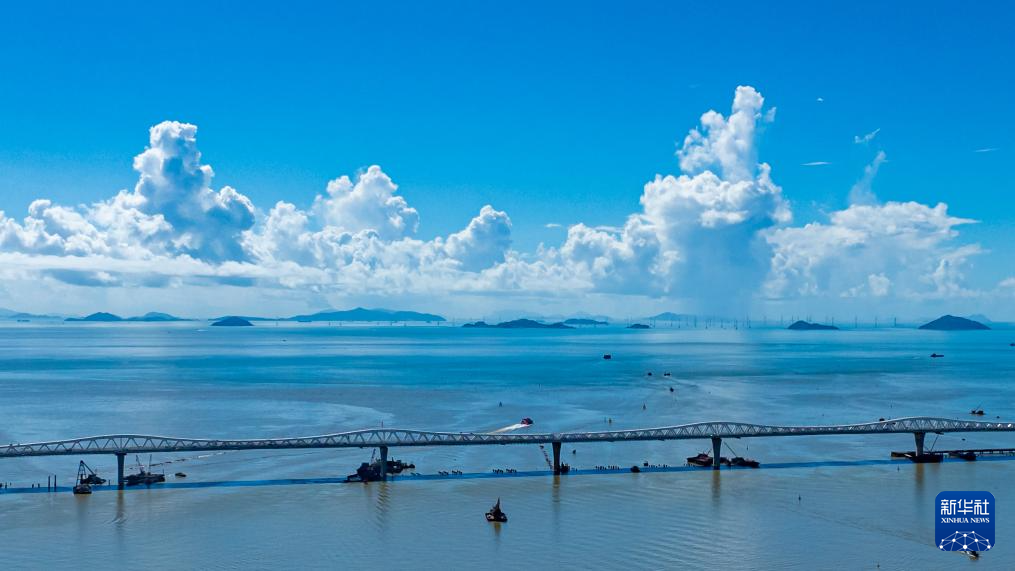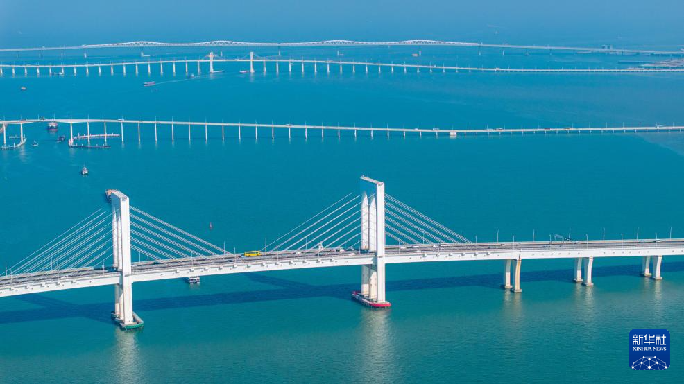 7月5日,澳門西灣大橋、橫琴、珠海一帶的景色(無人機照片)。